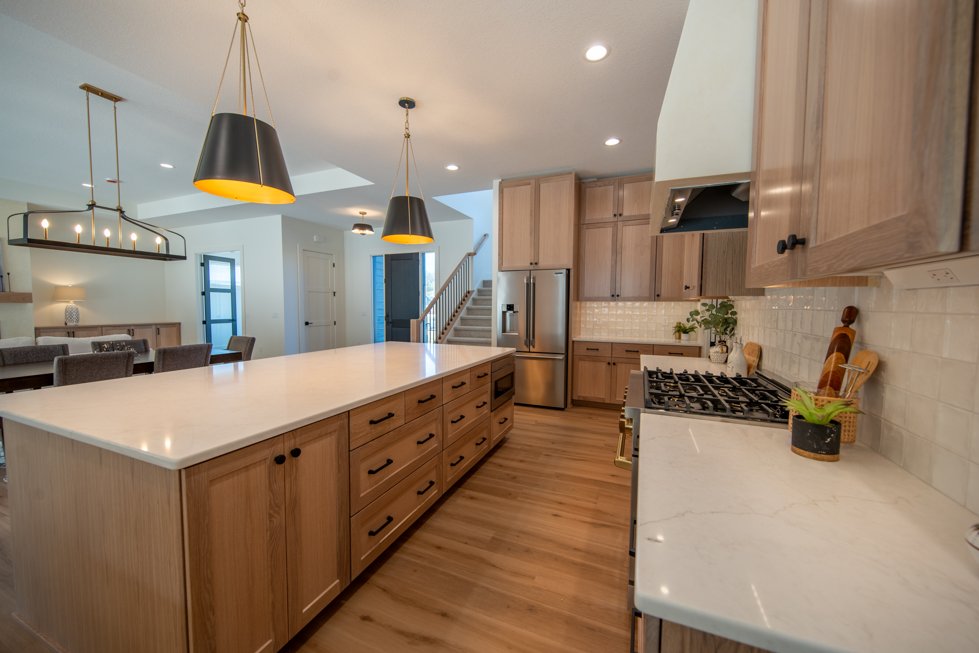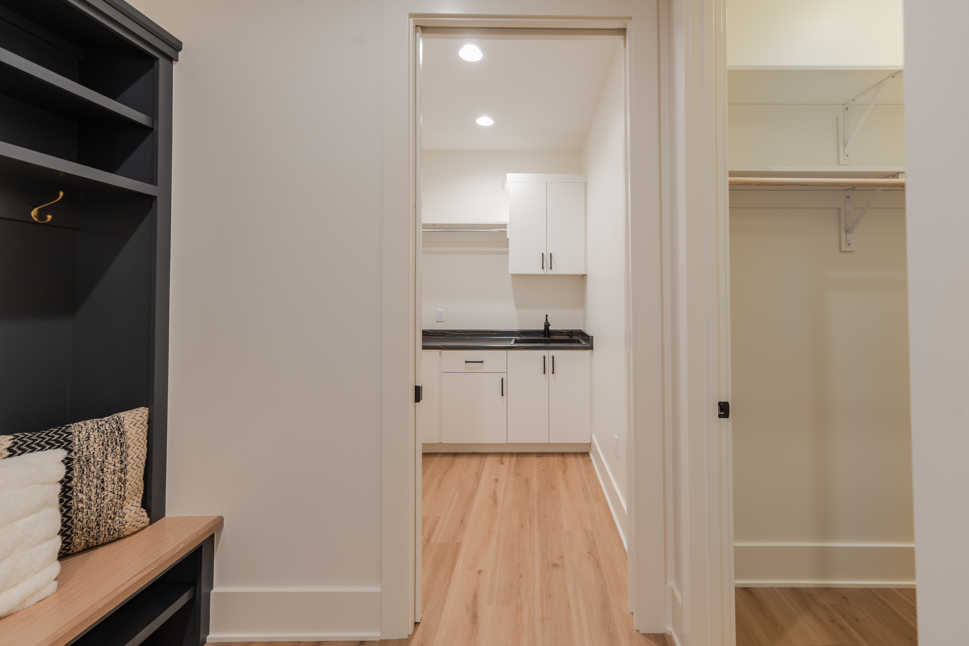 Coming home has never been easier. An 8-foot bench and drop zone by the fridge make unloading simple, while the walk-in pantry and direct path to the primary suite keep everything organized and within reach.