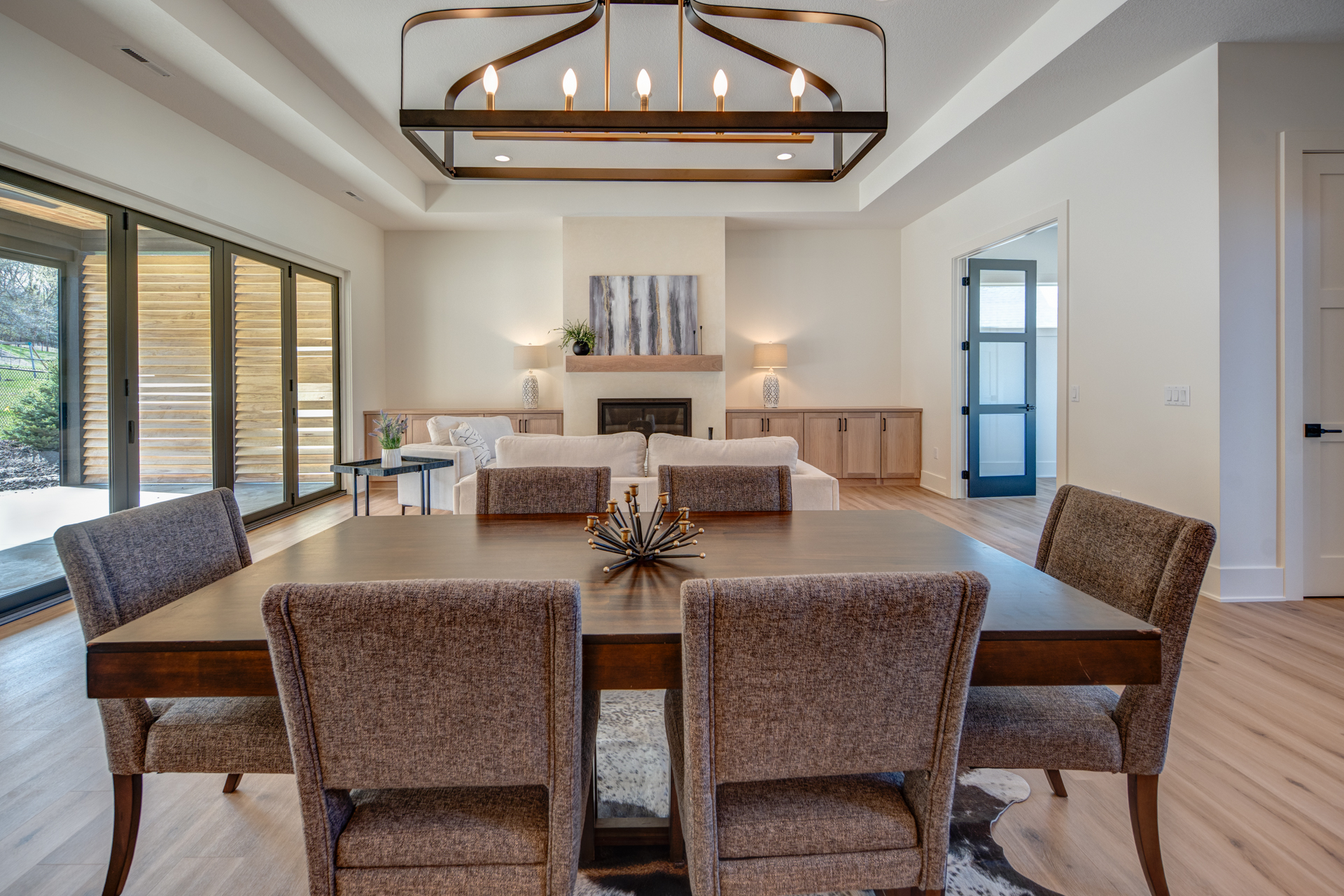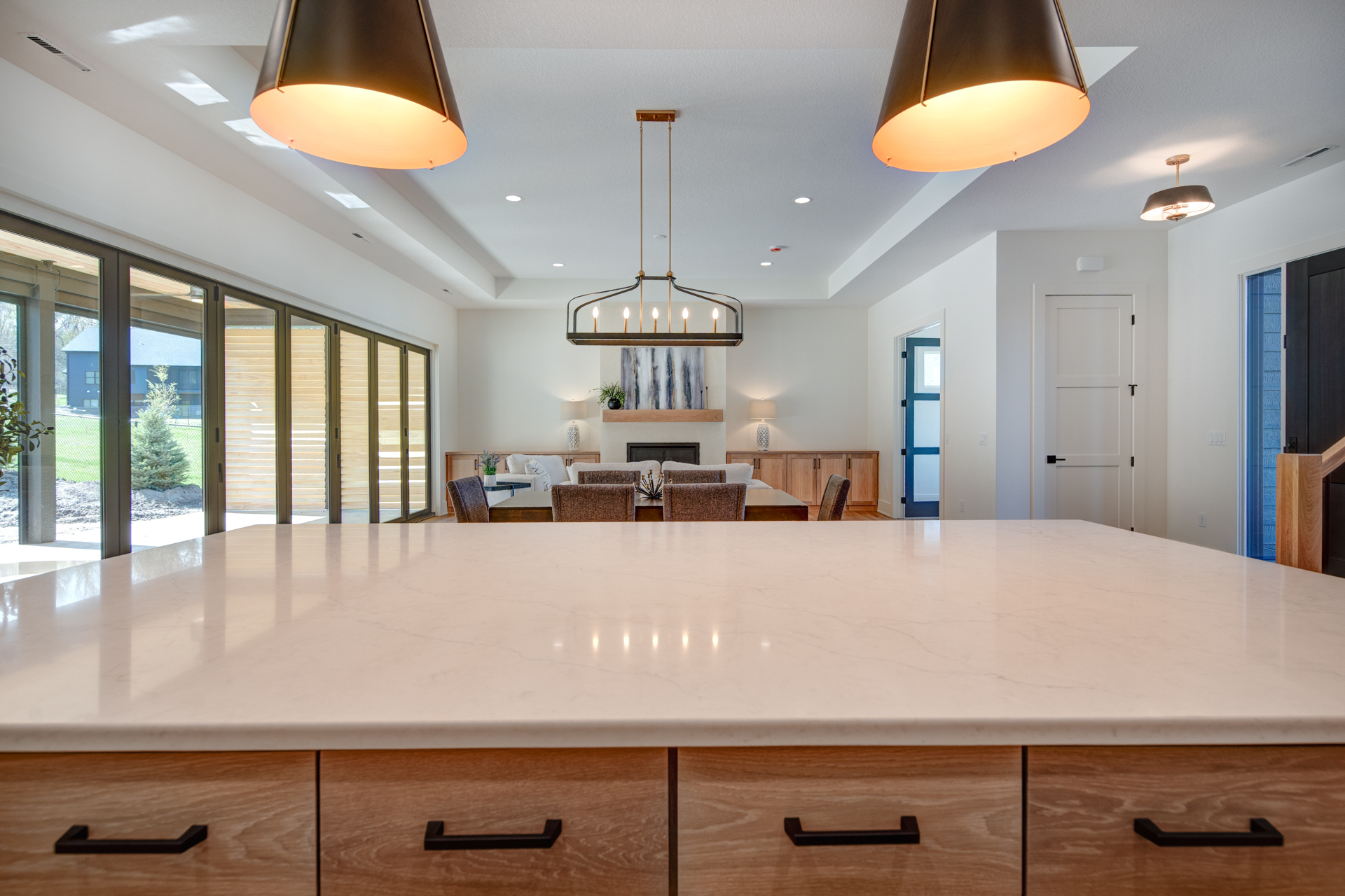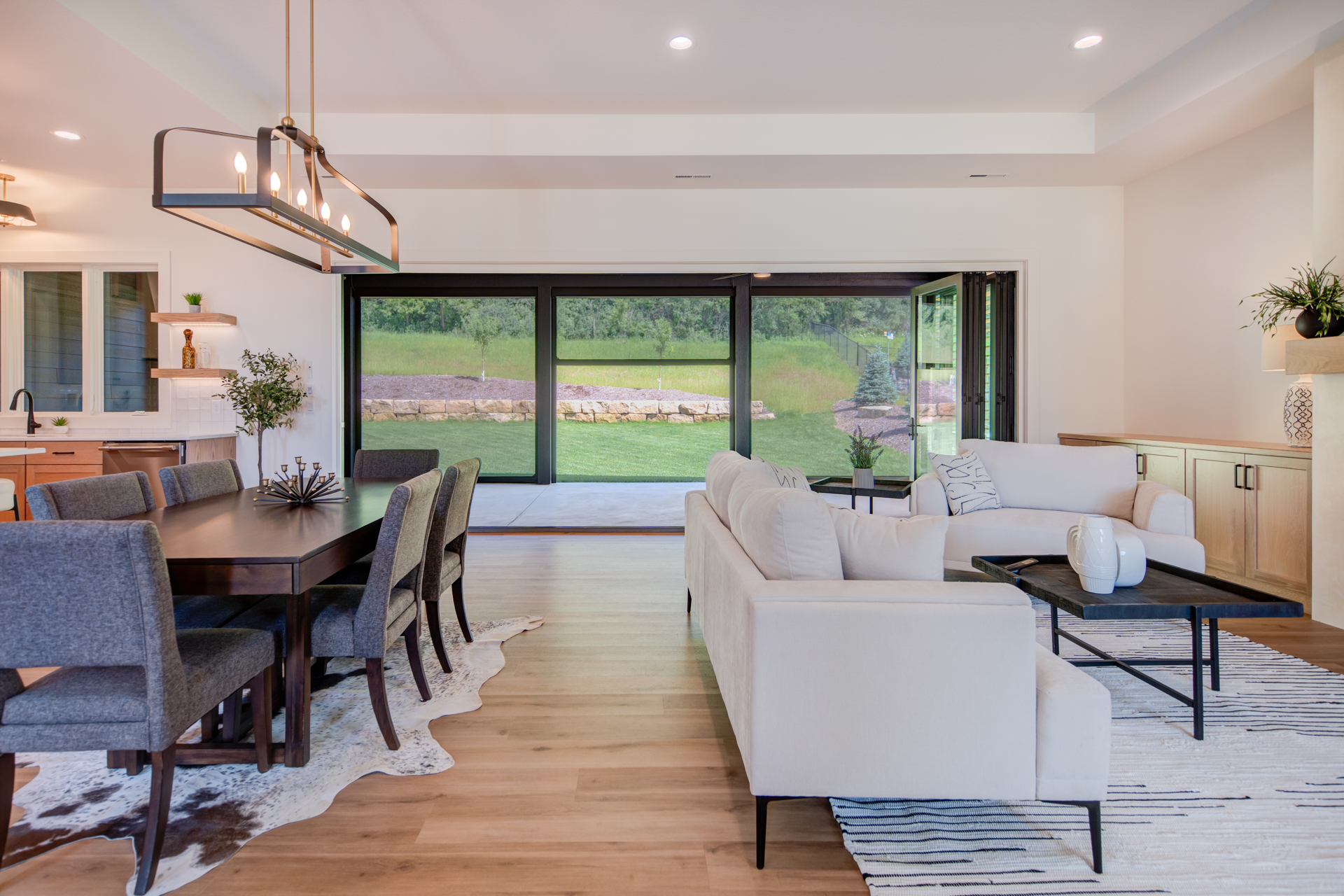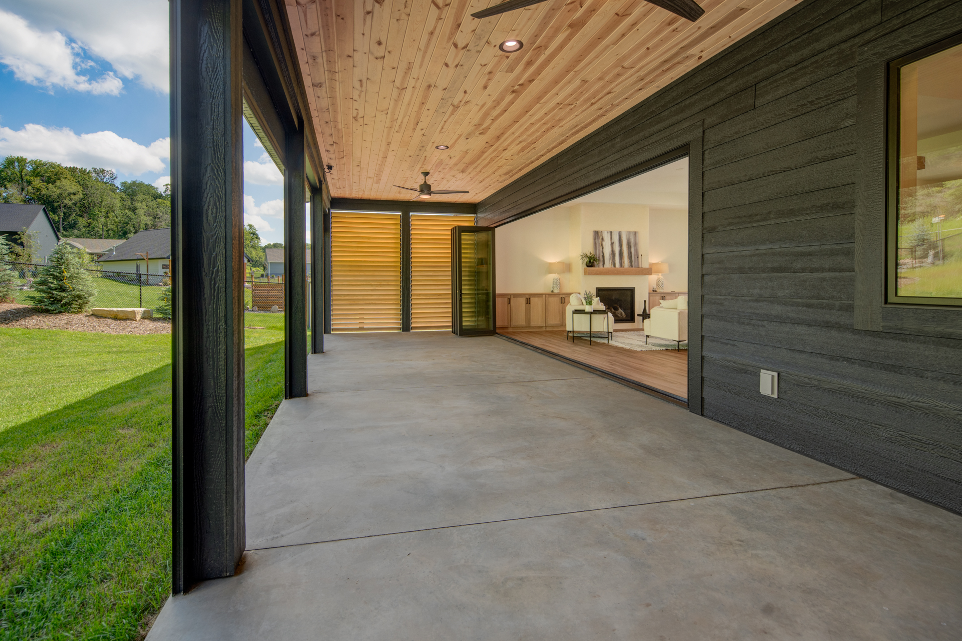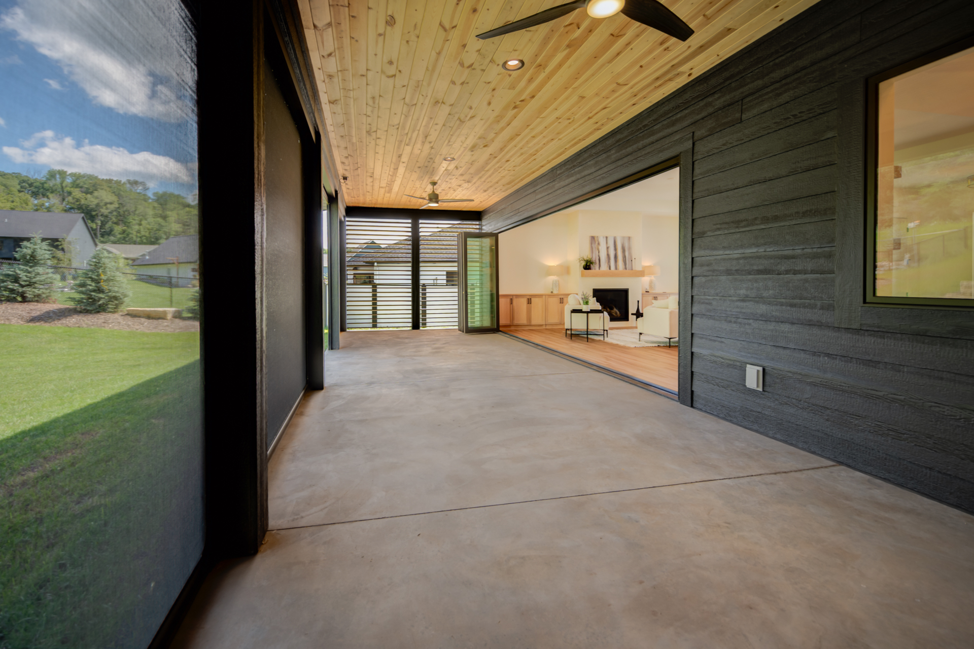 Anchored by a 21-foot accordion door, the 14-by-36-foot power-screened porch creates a seamless connection to nature—offering space to entertain, relax, and enjoy the outdoors without insects or the elements intruding.